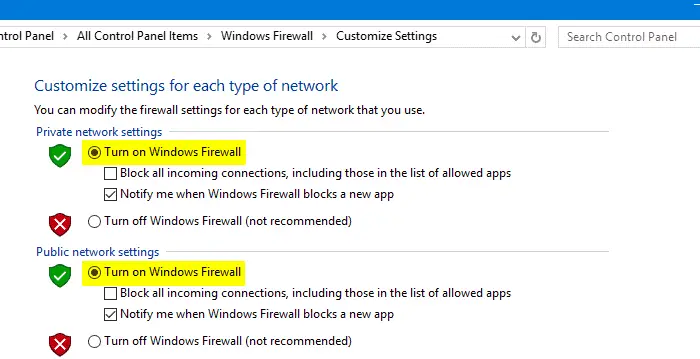 Turn off “Windows Defender Firewall” under both network types-: public and private.