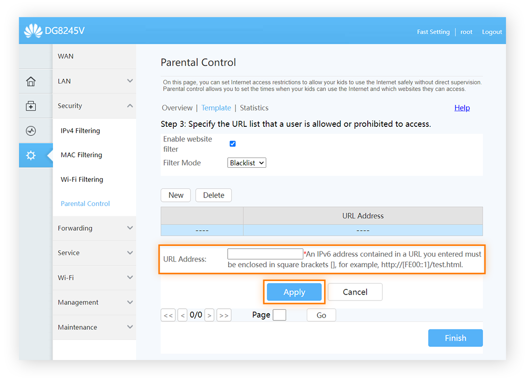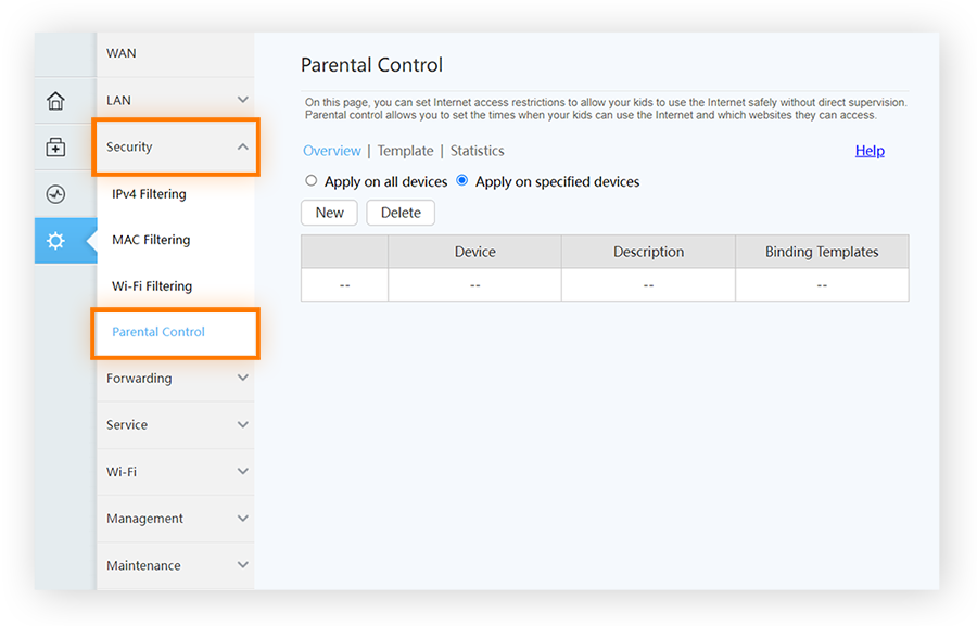 - Locate the “Parental Controls” or “Website Blocking” page.