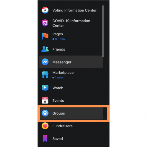 2: Click on shortcut: Groups on the left side news feed of the screen