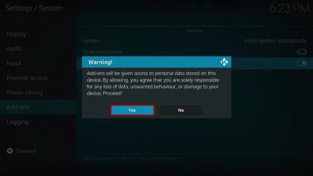 - Inside the Kodi application settings, search for the “Reasonable Store” choice and select it.