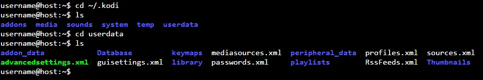 - Enter the following command to navigate to Kodi’s user data directory: – `cd ~/.kodi/user data.