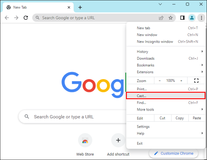 - Open Google Chrome and choose Cast from the options menu to enable casting if you use a PC.