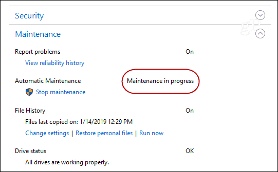 6. Choose the Run Maintenance Task button. Press the Next button on the window that pops up.