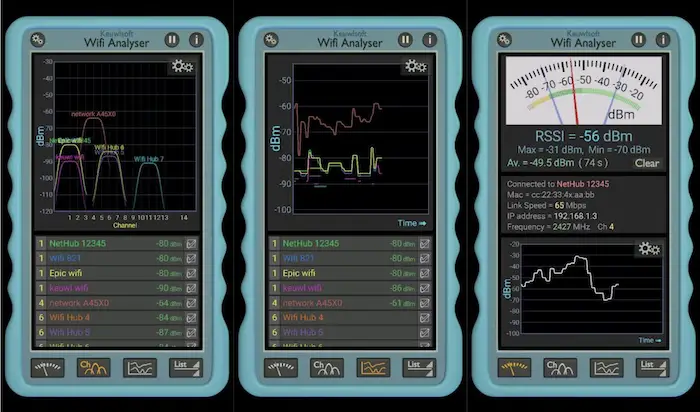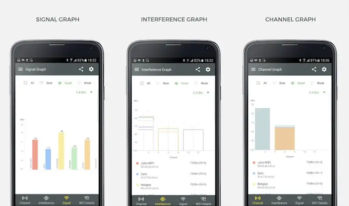 It is one of the best WLAN Network Analyzer apps. The best part about WiFiAnalyzer is that it is completely ad-free. This app is a total pro for WLAN network analysis because it shows in-depth details about your WiFi router.